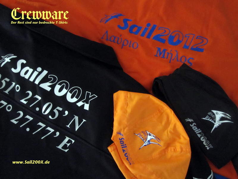 ist das Logo von Sail200X abgebildet, auf dem Rücken ist unter